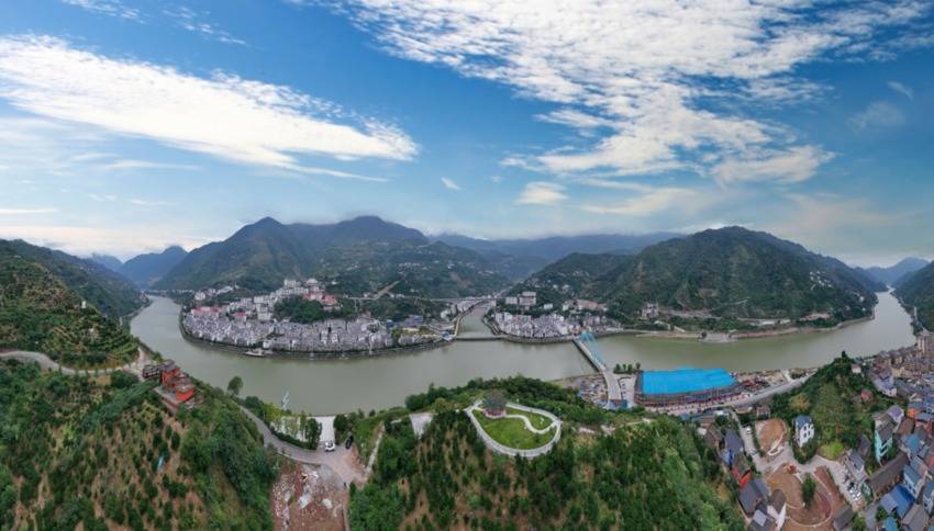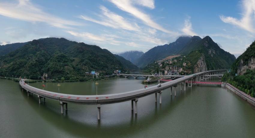 江水收敛起奔涌的浪,在三峡臂弯里漾作澄澈一蓝。昔日陡峭的峡壁,如今映着云影,像铺开的软缎,把天空也揉进这汪蓝里。